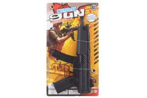 Plastový samopal. Po zmáčknutí spouště vydává zvuky.
