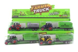 Kovový traktor s plastovým valníkem na zpětný chod.