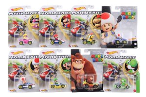 Vyber si svoji oblíbenou Mario Kart™ postavu a vyraž plnou rychlostí na off-line závody a kaskadérské šílenství s Hot Wheels® Mario Kart™ angličáky v měřítku 1:64!