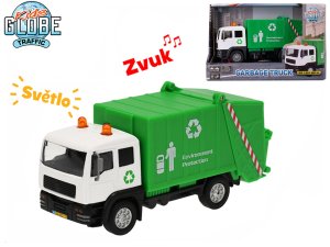 Popelářské auto na volnoběh, světelný a zvukový efekt, pohyblivé části, otevírací zadní část, popelnice součástí.