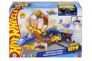 Závoďte přes policejní stanici ve městě Hot Wheels®, která je vybavena nastavitelnou smyčkou pro různé způsoby hraní.