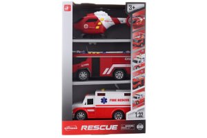 Krásná sada 3 hasičských dopravních prostředků - 2x auto + 1x helikoptéra.