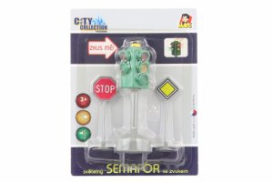 Set 3 dopravních značek s 5 originálními symboly, potisknutými oboustranně - hlavní silnice/konec hlavní silnice, stop/stop, parkování/přechod pro chodce.