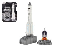Kovová vesmírná sada, která obsahuje raketu, kosmonauty, družice, vozidlo…