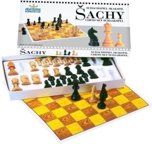 Stolní hra se sadou dominových kamenů o rozměrech 20x40 mm v krabičce.