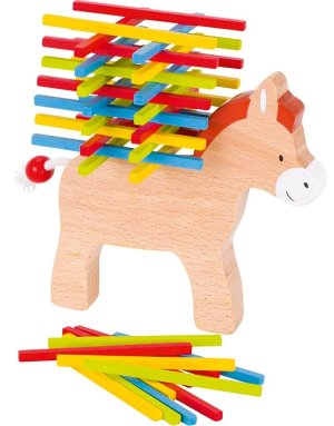 Balanční hra Oslík vyrobená ze dřeva rozvíjí jemnou motoriku, šikovnost a trénuje trpělivost.