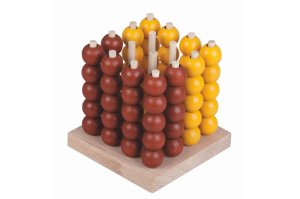 Logická hra pro dva hráče obsahuje 64 dřevěných kuliček ve dvou barvách a hrací desku se 16ti tyčkami.