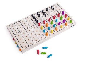 Dřevěná matematika. Děti se mohou naučit aritmetiku s barevnými čísly a na zadní straně najdou proces řešení.