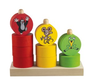 Veselé pyramidy se skládají z 12 navlékacích dílů a jednoho základního dílu se třemi tyčkami.