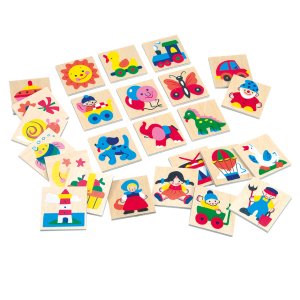 Rozměr dílku: 4x4x0,3 cm Věk: 0+ Materiál: dřevo Počet dílů: 25