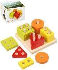 Logická hra WOODY Základní tvary na desce Logická hra pro nejmenší Úkolem dítěte je, podle tvaru, barvy a počtu kolíků, navléknout a umístit destičku na správné místo Obsahuje 16 dílů Věk 2+ Rozměry …