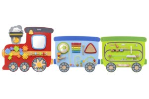 Dřevěná nástěnná hra vláček s vagonky.Obsahuje spoustu herních prvků pro rozvoj dětské motoriky.