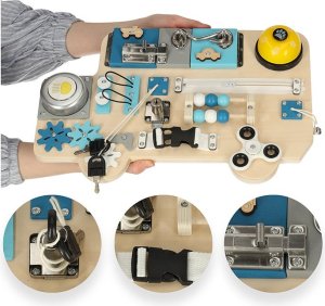 Montessori dřevěná deska k trénování manuální zručnosti dětí.