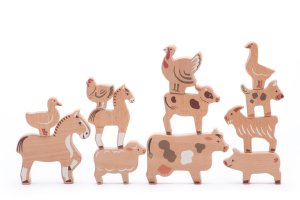Rozměr největšího zvířete: 12,3x12x1,8 cm Věk: 1,5+ Materiál: bukové dřevo