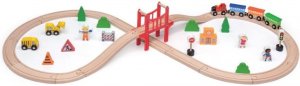 Dřevěná vláčkodráha ve tvaru čísla 8.