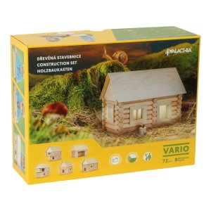 Rozměr balení: 29x21,7x4,7 cm Rozměr chata: 18x17x14 cm Věk: 8+ Materiál: dřevo, karton Obtížnost: jednoduchá Počet dílů: 103 ks Vyrobeno v České republice