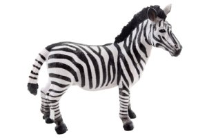 Plastová zebra o velikosti cca 10 x 9 x 4 cm.