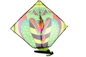 Drak létací s motivem dráčků o rozměrech cca 74 x 40 cm.