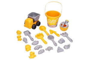 Sada na písek 21 ks. Obsahuje auto, kyblík, konvičku, 12 formiček, sítko, lopatky, hrabičky.