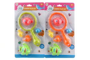 Chytání rybiček. Balení obsahuje podběrák a 5 rybiček různých tvarů a velikostí.