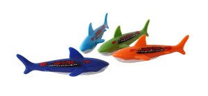 4 barevní žraloci, kteří se po vhození do vody potopí a ty je musíš vylovit.