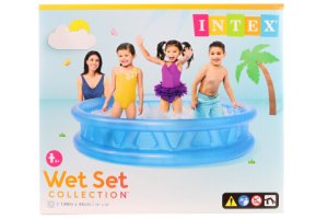 Nafukovací bazén ve tvaru kruhu, se kterým si děti užijí spoustu zábavy.