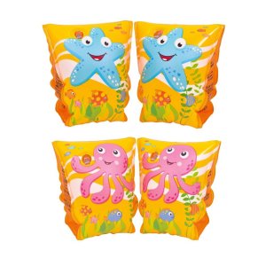 Rukávky nafukovací dětské 23 x 14 cm, mix. rozměry: 23 x 14 cm materiál: vinyl mix dekorů: chobotnice, hvězda Nafukovací rukávky pro děti od 3 do 6 let.