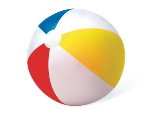 Nafukovací velký míč s barevnými pruhy.