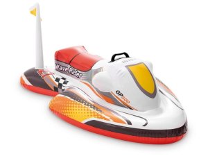 Nafukovací skútr značky Intex o rozměrech 117 x 77 cm.