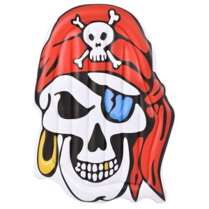 Nafukovací lehátko ve tvaru pirátské lebky je určené k letním hrám nebo odpočinku na vodní hladině.
