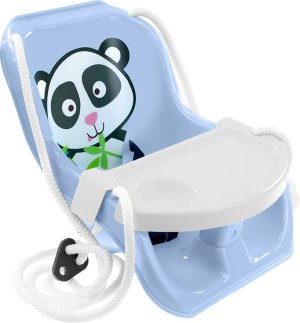 Dětská závěsná houpačka s motivem pandy, která je díky své konstrukci, určena pro velmi malé děti.