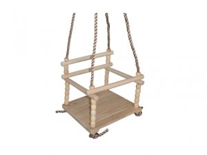 Rozměry houpačky: 33x33x58 cm Délka lana: cca 144 cm Věk: 18m+ Materiál: dřevo, látka Nosnost: 60 kg