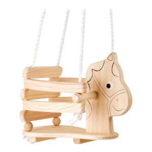 Houpačka z přírodního dřeva, se zábranou proti vypadnutí.