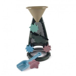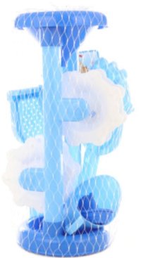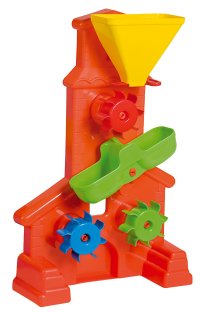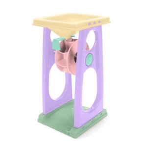 Krásná sada s lopatkou, bábovičkou a velkým mlýnem, kterým "protéká" písek i voda.