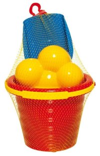 Sada obsahuje lopatku, hrabičky, formičky 3 ks, síto, kyblík o průměru 18 cm - 2 litry.Vhodné od 12 měsíců