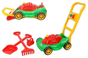 Tato barevná dětská sekačka z plastu je skvělým doplňkem pro venkovní hry na zahradě.