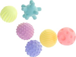 Barevné míčky s různou strukturou, vhodné pro stimulaci smyslů. Úžasně barevné senzorické míčky s různými texturami.