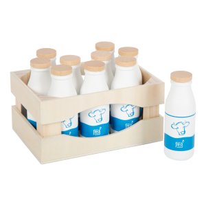 Rozměr přepravky: 14x10x7 cm Rozměr láhve: 9 cmxØ 3 cm Materiál: dřevo Věk: 3+ Obsahuje: 10 láhví na mléko