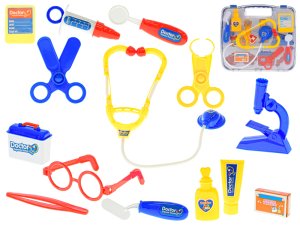 Tato sada obsahuje vše, co malí „doktoři“ potřebují k tomu, aby si zahráli na péči o pacienty! Sada zahrnuje vrtačku, špachtli, léky, kartáček, kelímek a další užitečné doplňky, které podporují kreativní hraní a rozvíjejí jemnou motoriku.