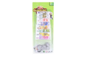 Hrací peníze. Sada obsahuje mince a bankovky.
