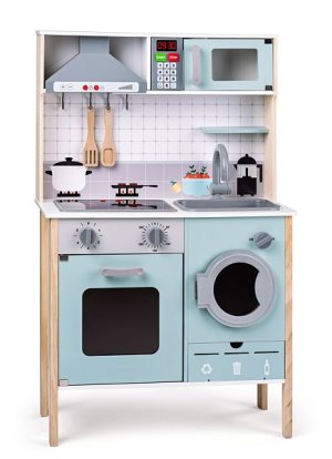 Dřevěná kuchyňka v růžových tónech od výrobce Trefl z řady dřevěných hraček, které podporují rozvoj dítěte.