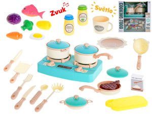 Dětská kuchyňka pro děti od 3 let, množství zvukových a světelných efektů - červené světlo na plotýnkách, osvětlení mikrovlnky, zvuk ventilátoru, zvuk praskajícího oleje, atd., zábavné učení o třídění …