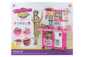 Sada nádobí do kuchyňky – obsahuje síto, dva kastůlky s pokličkou, pánvičku, obracečku a naběračku. Vyrobeno z kvalitního plastu v EU.