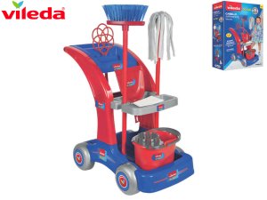 Uklízecí sada s vozíkem Vileda – obsahuje vozík, kbelík s turbem, mop, smeták, lopatku a klepačku.