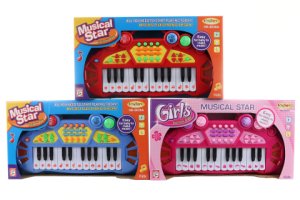 Elektronické klávesy - 32 kláves, 8 demo písní, 6 rytmů, 4 zvuky bicích nástrojů, automatické vypnutí a další funkce.