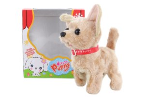 Plyšové štěňátko na kabel, štěká, chodí, vrtí ocáskem, velikost 20 cm, 2 druhy - Čivava a Husky.