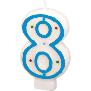 Narozeninová svíčka ve tvaru číslice 8 s puntíky.