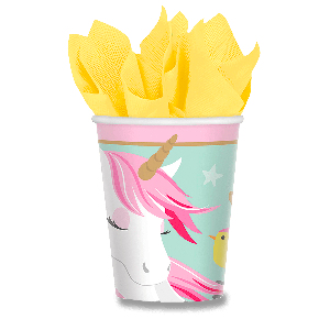 Papírový kelímek o objemu 270 ml v růžové barvě.