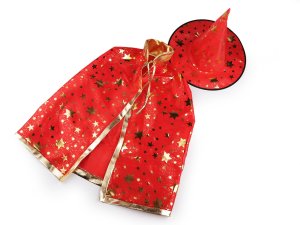 Dětský čarodějnický karnevalový kostým se skládá z klobouku a pláště.