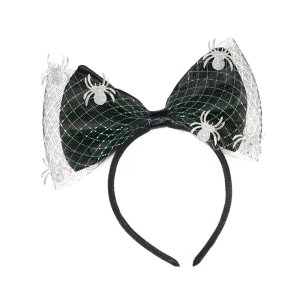 Úžasná čelenka s velkou mašlí a pavoučky je senzačním doplňkem na párty či karneval.